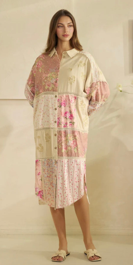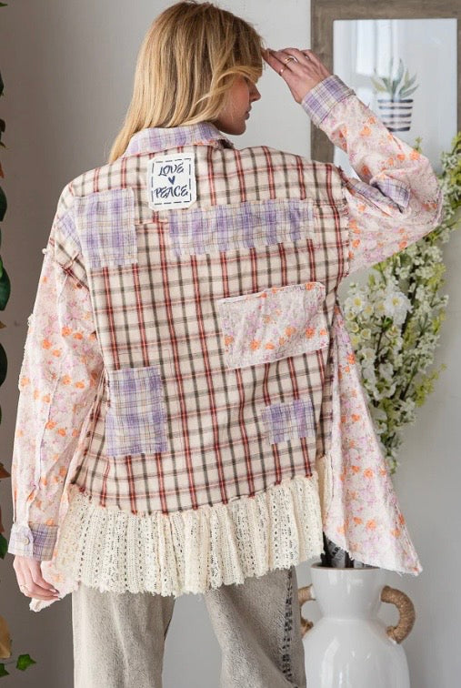 Washed Multi Print Pieced Long Shirt