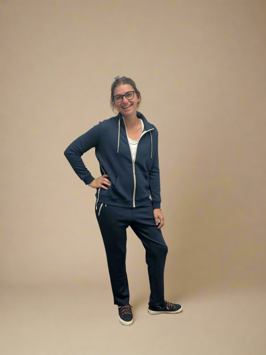 - Versatile navy color that pairs effortlessly with activewear or casual outfits