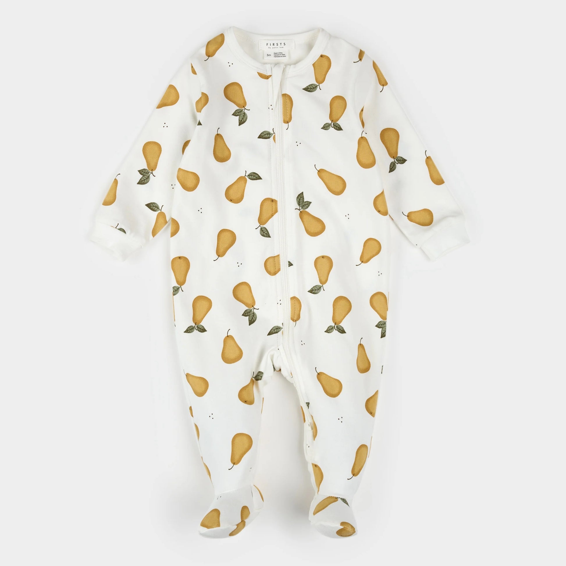 Wrap your little one in cozy comfort with this adorable footed baby sleeper, featuring a soft white background and a charming golden pear print – perfect for fall snuggles. Made from organic cotton, it’s breathable, gentle on delicate skin, and designed for all day and night comfort.