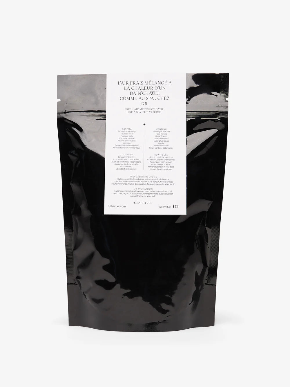 The fresh air, the aromas of lavender and eucalyptus blend with the warmth of your hot bath. It's like at the spa, but it's your house. Calm enters you through your nostrils and every pore of your skin.