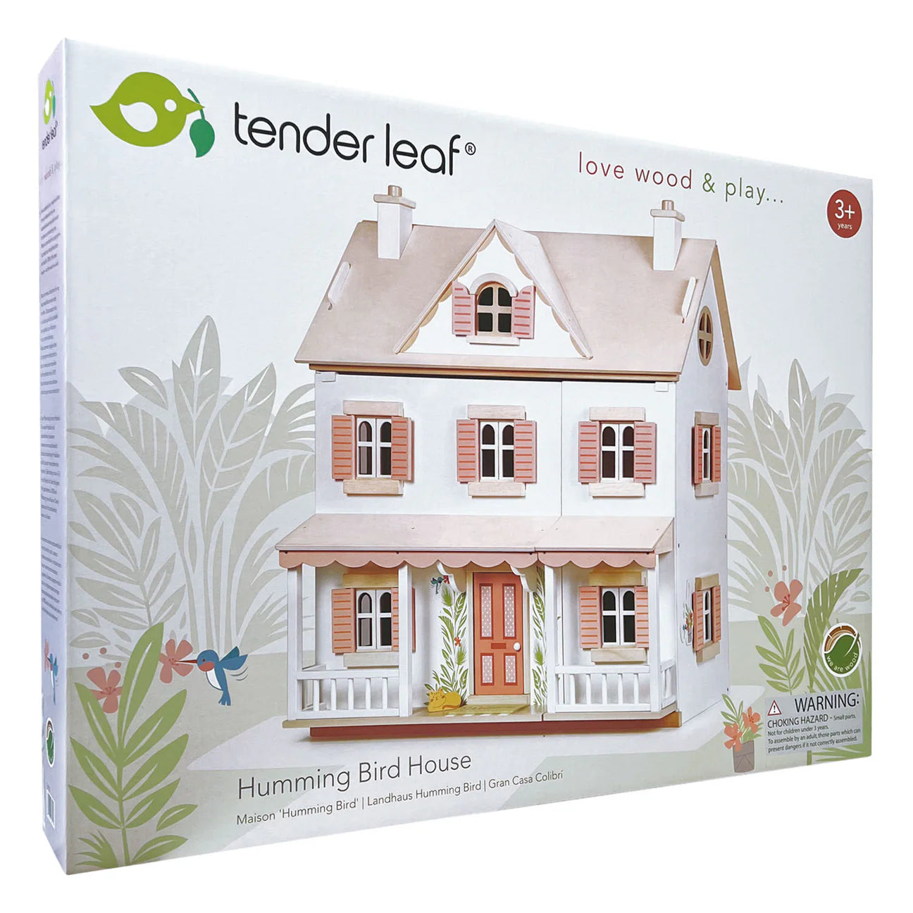 Welcome to our exotic Humming Bird House! A colonial style home with a veranda on either side of the front door, which is decorated with an abundance of flora! Can you spot the little hummingbird? Every window has opening and shutting shutters and window frames, and there is even a little window in the top gable. Large, spacious and ultra stylish, this house has 4 rooms plus space in the attic ready to be filled with our dolls house furniture sets. Roof panel is removable. Self-assembly required. Dolls and furniture sold separately.