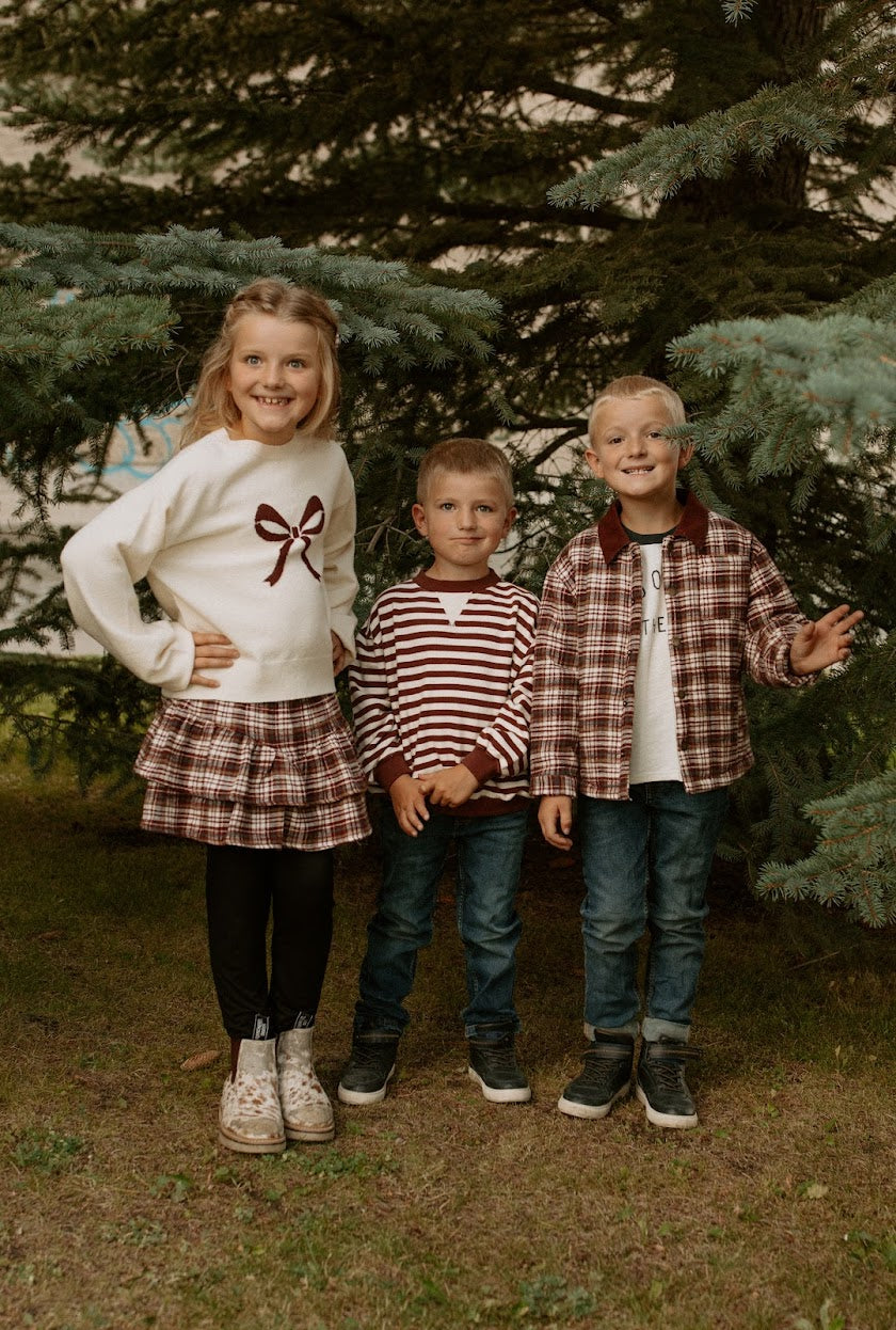 Designed with a bold burgundy plaid pattern, sturdy metal buttons, and a practical front pocket for small treasures, this jacket brings classic fall vibes with a modern twist. Whether he’s heading to school, playing outside, or posing for fall family photos, this is the go-to layer he’ll actually want to wear.
