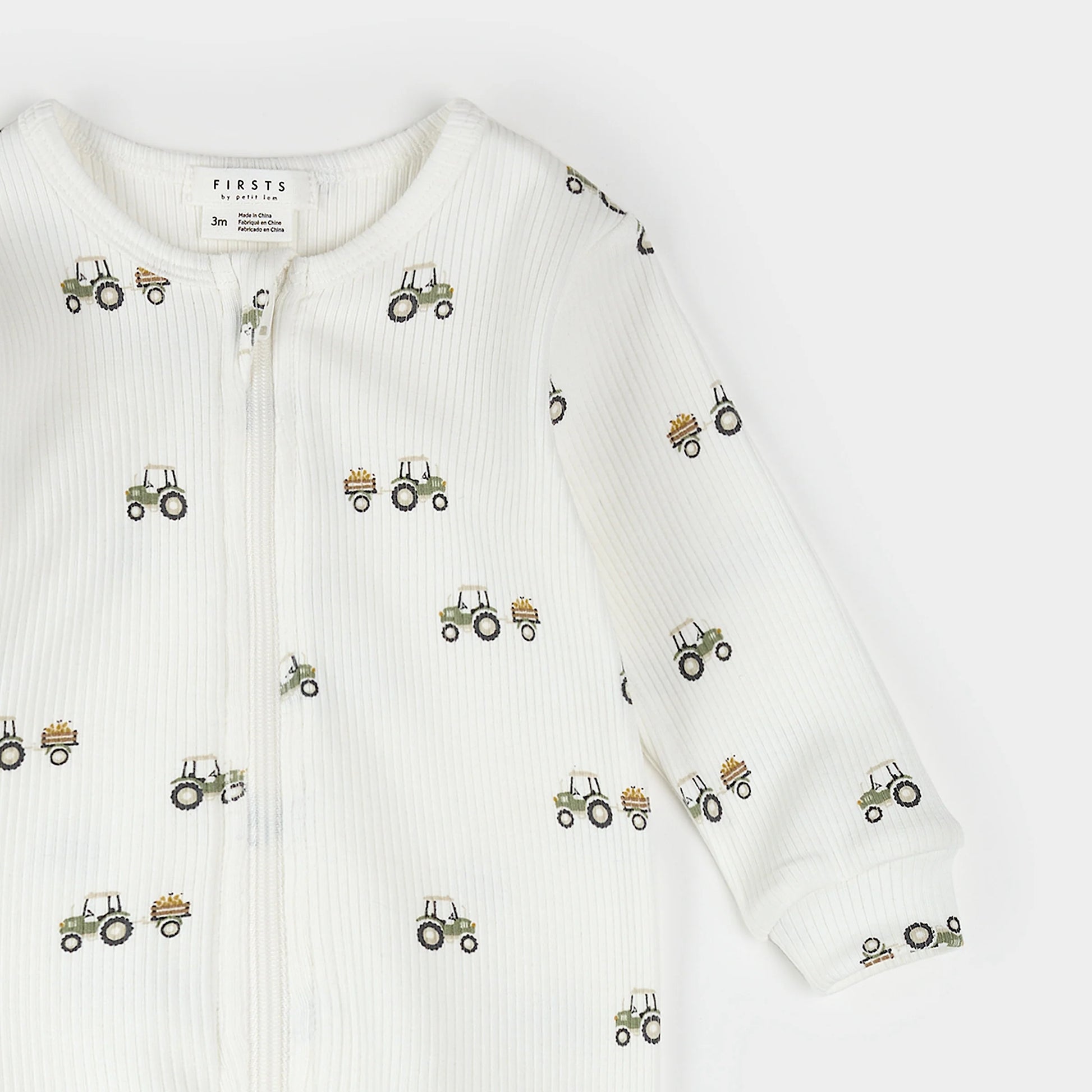 Made for cozy nights and playful days, this soft ribbed footed sleeper is the perfect blend of comfort and country charm. With a crisp, white background and adorable little tractor print, it’s a sweet nod to farm life – perfect for country mamas who are raising little farm kids.
