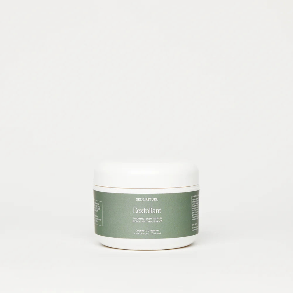 A creamy exfoliant with an invigorating aroma of green tea and coconut. A gentle skin ritual that connects mind and body. It offers you an energizing sensory journey.