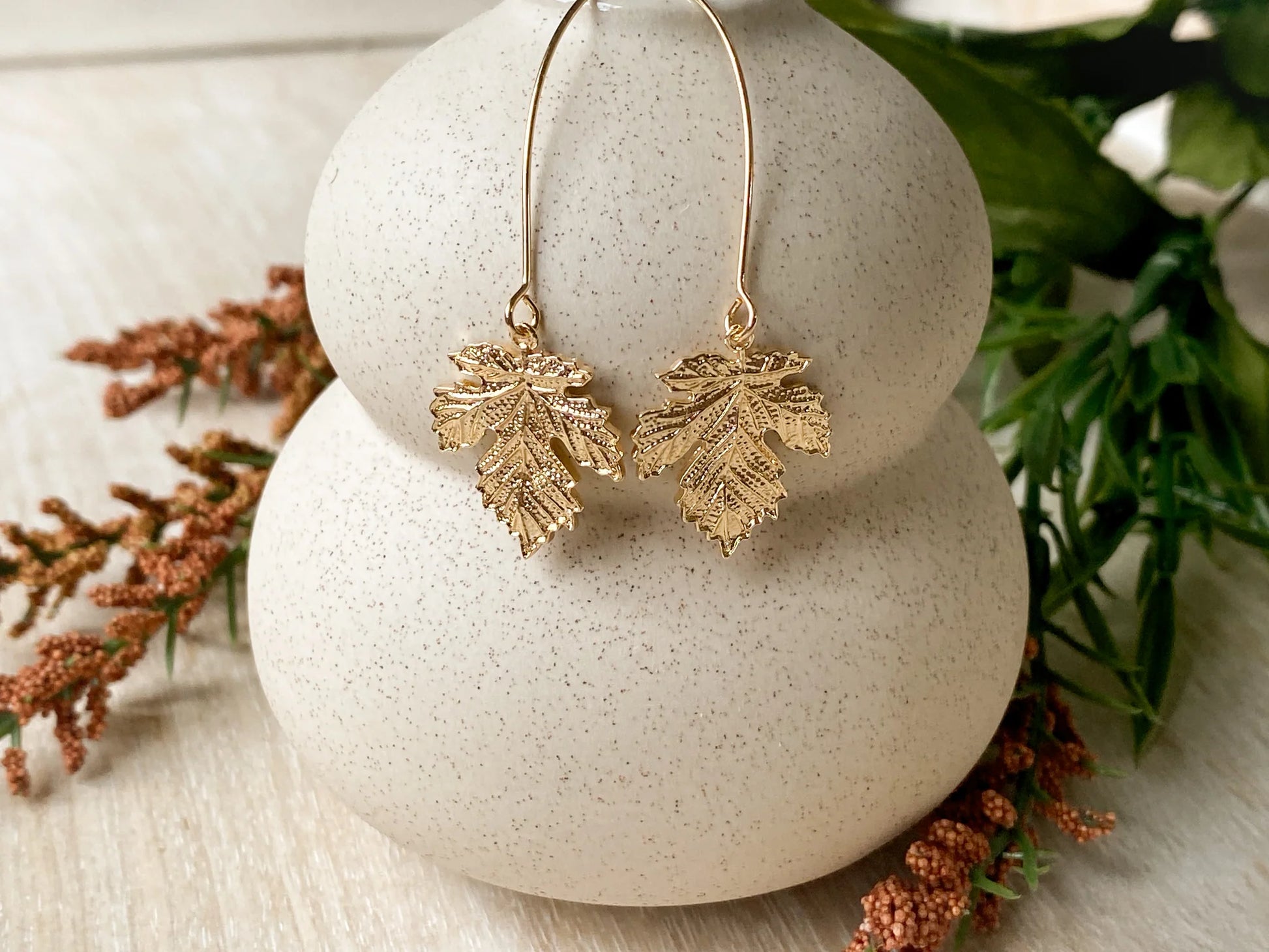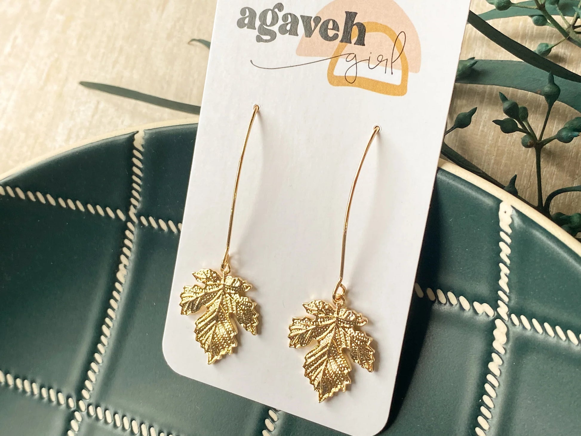 A simple and beautiful maple leaf dangle. 18K Gold plated brass and nickel free